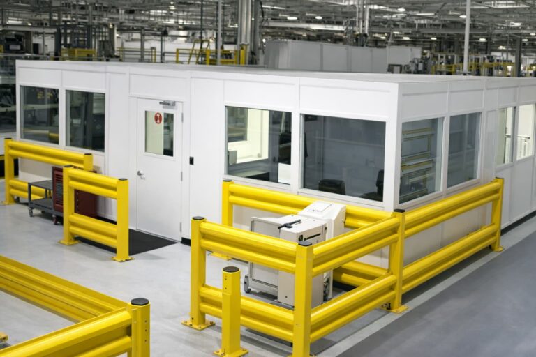 In-plant modular designs can be enclosed with added soundproofing and climate control. They can also be open and used as a dividing system for production processes.